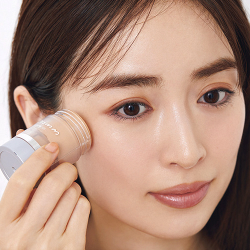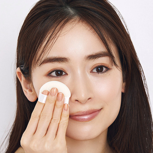パウダーUVなら、極薄でお顔にオン。固形UVとの重ね技ならさらにUV膜の強化に期待できます。お粉をつけすぎないよう、いったんティッシュオフしてから肌にのせて。