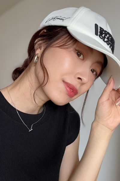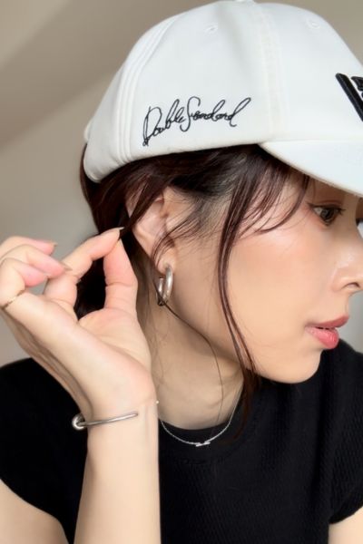 どこか力の抜けた印象のキャップスタイルは、前髪や後れ毛にウエーブをかけて束でたっぷり引き出すのがポイント。きれいめ派はジュエリーで大人のリッチ感も盛ってあげると、カジュアル感が軽減してセンスよくまとまる。