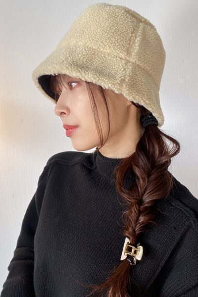 キャップやファーハット、ニット帽におすすめの超簡単アレンジ! 崩しテクニックが不要だから、時短で完成。