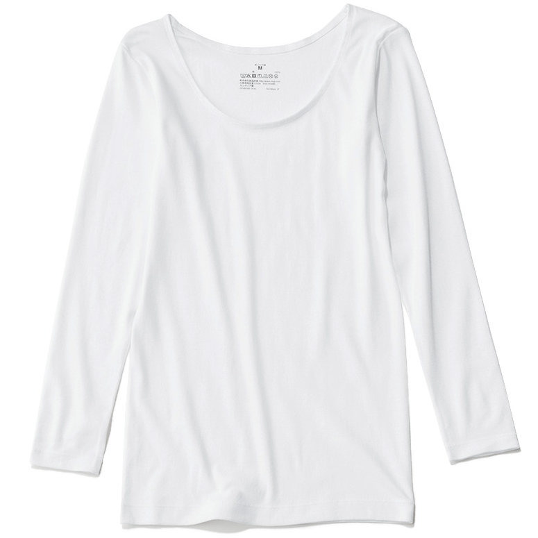 「やわらかくてよく伸びるコットン素材。着やすいところもファンです」 インナー [あったか綿 Uネック八分袖Tシャツ]¥1,490(無印良品 銀座〈無印良品〉)
