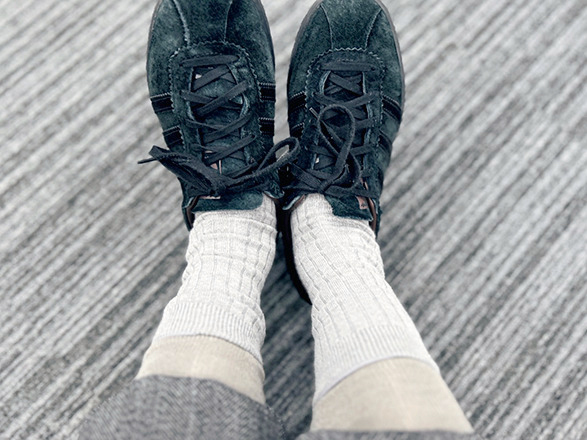 「シルクのレッグウォーマーにウール混の靴下を重ねるのがMy定番。ふくらはぎを温めるのが超重要なんです」