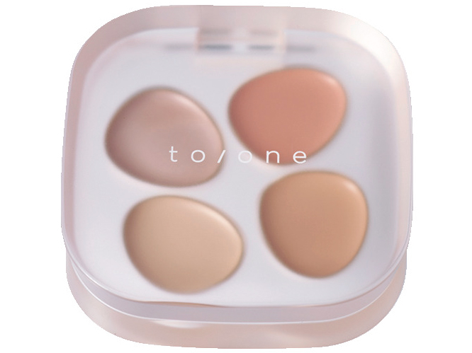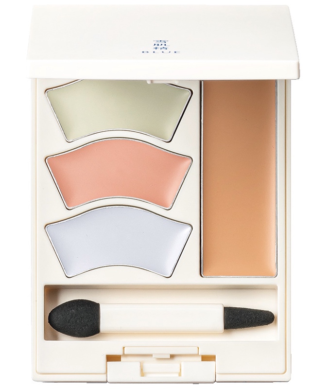 赤みカバーに優れたライトグリーン、クマをカバーするベビーピンク、透明感を与えるクリアブルー、シミや凸凹をカバーするオレンジみのあるナチュラルベージュがセット。薄膜で肌に一体化するようフィットし、うるおいが長時間持続。