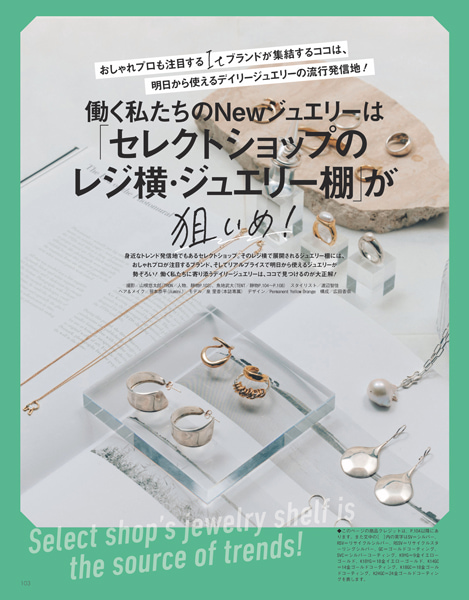そのレジ横で展開されるジュエリー棚には、おしゃれプロが注目するブランド、そしてリアルプライスで明日から使えるジュエリーが勢ぞろい!