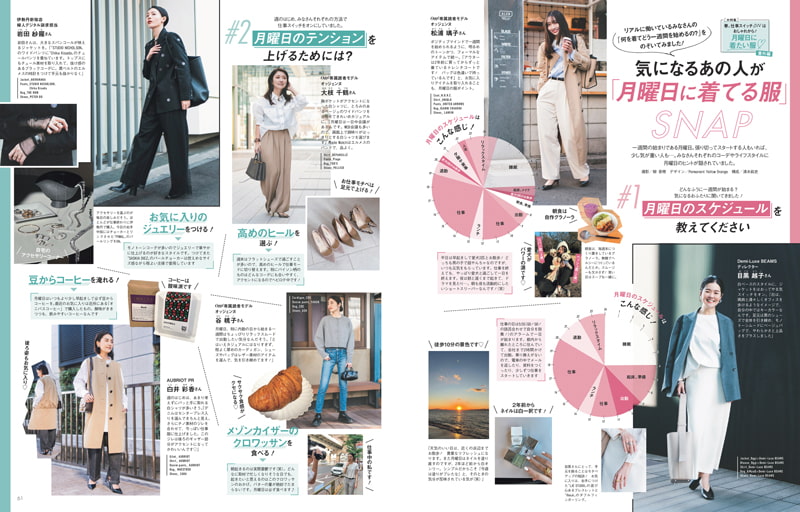 でも、今、このページに出合った皆に共通するのは「月曜日は、ファッションの力を借りて気分よく過ごしたい」という思い。