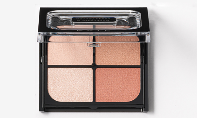 さりげなく目元に陰影をもたらすサイレント陰影マットカラーと、濡れたようなツヤを出すバウンシーグロウハイライト、さらに滲み出すような血色感を演出するバウンシーフィットカラーがセット。目元はもちろん、頬にも使える。