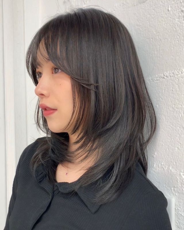 レイヤーと美髪を兼ね備えたこちらのミディ、全体にも軽めにレイヤーを入れていますが、耳前を中心に入れているためスタイリングがしやすく、結んでもパラパラ落ちてこないのが嬉しいポイントです。ヘアカラーは柔らかグレージュで、ツヤ感を出しながら透明感たっぷりに。