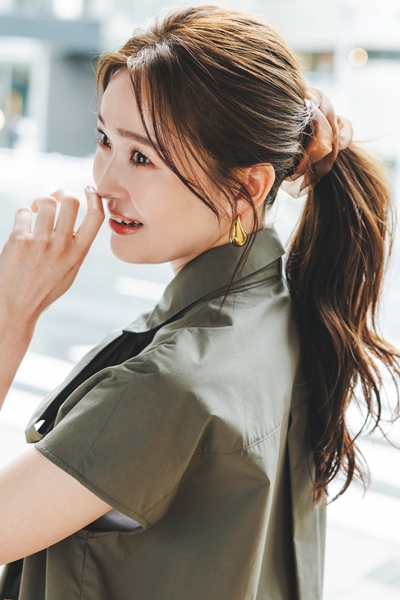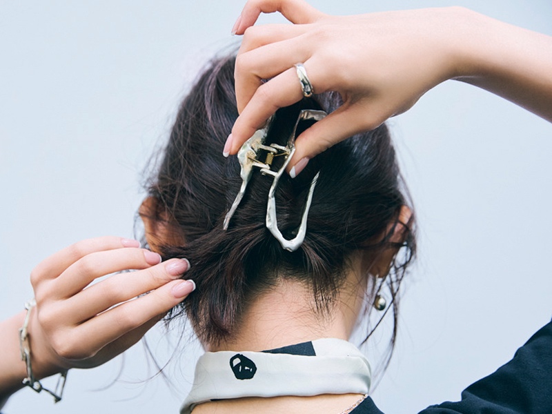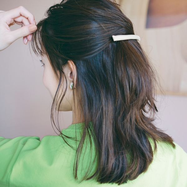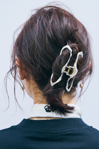 [2]ヘアアクセを、あえてセンターではなくサイドに差し込む。