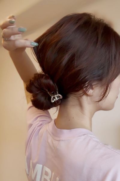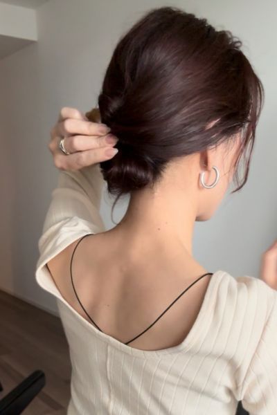 まずは、ボブ~ミディアムの方におすすめのまとめ髪アレンジを紹介。アップにするにはまだ少し長さが足りないという人は、低い位置でひとつ結びをしたりお団子をつくったりすると、ミニマムさが可愛く見えます。長さが足りないところは、あえて後れ毛として活用すればこなれ感のあるおしゃれヘアに。
