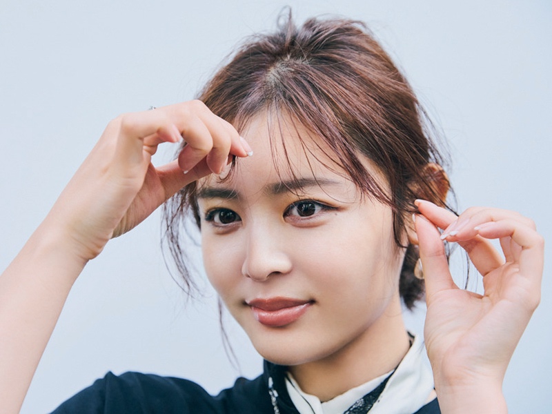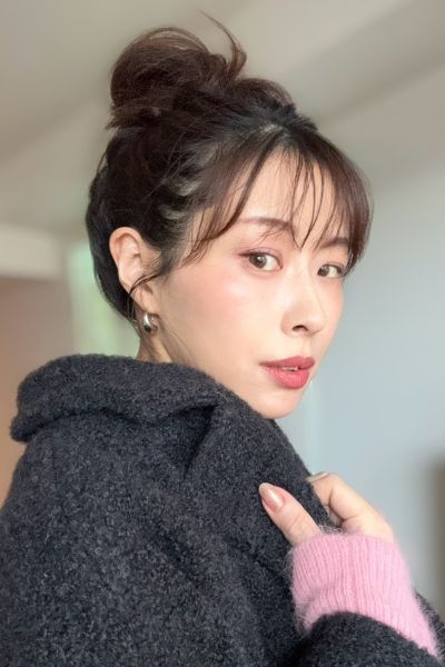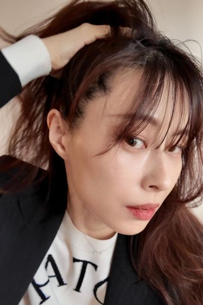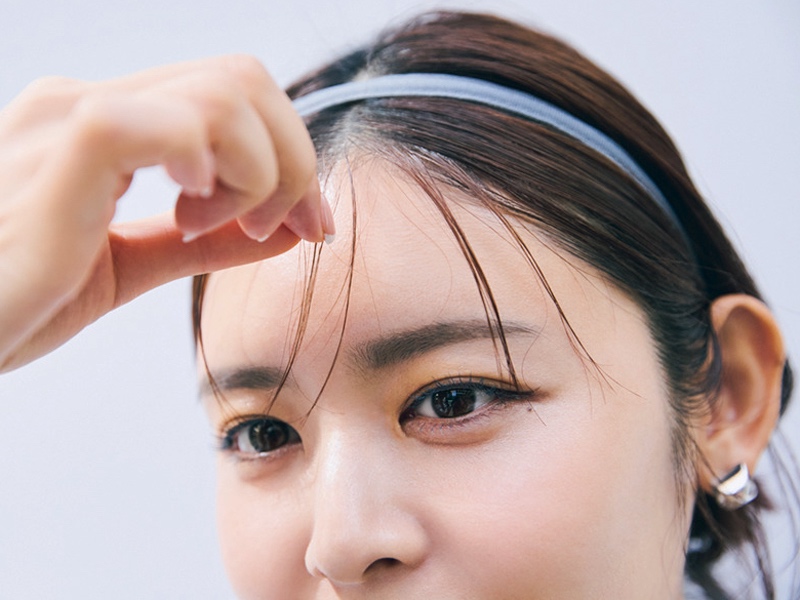 [3]前髪を少し引き出し、バームを少量つけ束感をつくって完成!