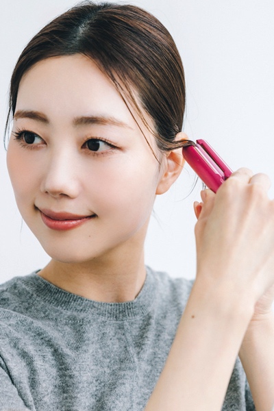 [3]顔まわりに動きがほしい場合は、ストレートアイロンで外向きに癖づける。