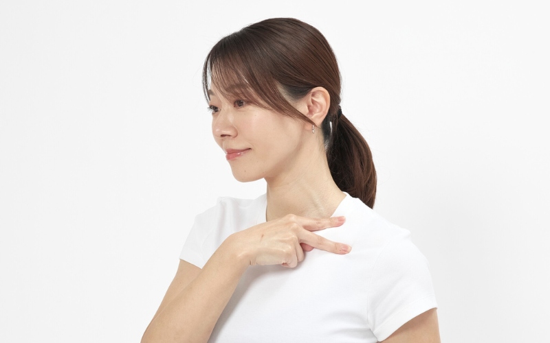 STEP 3:手の指先を鎖骨の外側に添えて、内側に向けてさする。