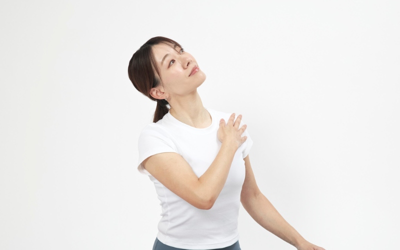 STEP 1:右手を左鎖骨に添える。