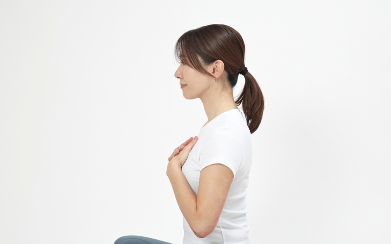 STEP 1:手をクロスして、鎖骨下に添える。