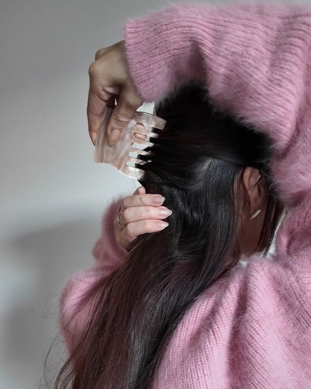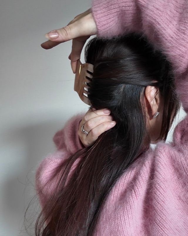 2.コーム型のヘアアクセで髪をすくう