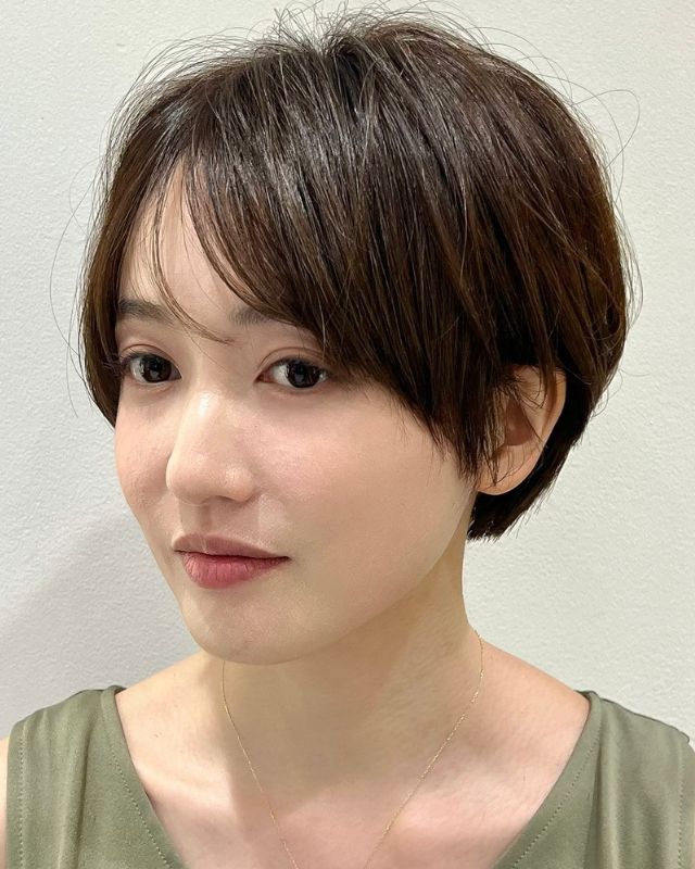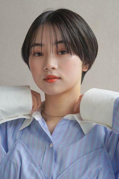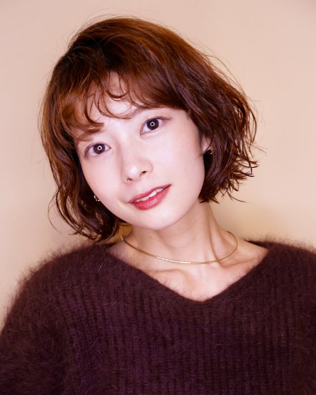 全体にレイヤーを入れているため頭の形がふんわり丸く見えるだけでなく、毛先に束感が出て軽やかな印象に。ほんのりくびれをつけて、バランスよくコントロールします。