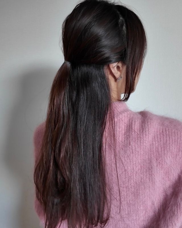 後ろ姿をすっきり見せられるハーフアップアレンジのできあがり。キレイめな印象でワンランク上のハーフアップに。ビジュー付きのコームアクセを使えばオケージョンにも対応できます。