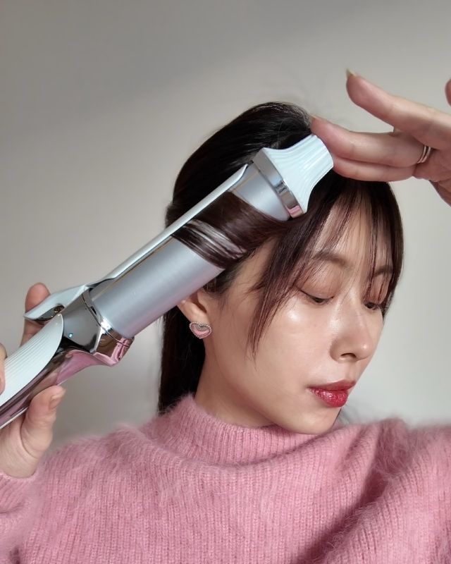 スタイリングは38mmのコテを使い巻きすぎないように、ベースを外ハネ、レイヤー部分は内巻きワンカール、前髪はリバースに流します。シンプルな巻きで簡単にできるのも嬉しいポイント。最後に軽めのオイルを全体に薄めになじませたら完成です。
