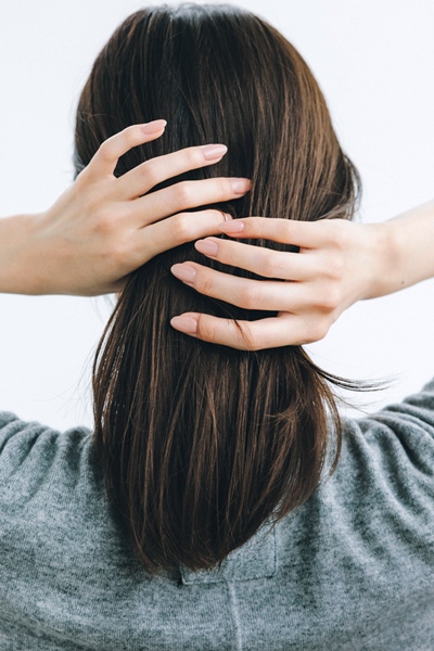 2.手ぐしでひとつにまとめて