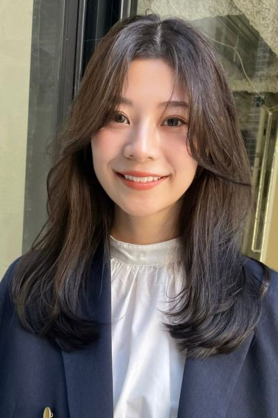 人気のレイヤーを低めに入れたくびれミディがこちら。ローレイヤーの自然な動きで上品な印象となり、まとまりもあるためオフィスカジュアルにもぴったりです。透け感のある前髪を合わせて抜け感も演出。