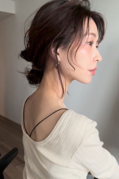 ラフな色気が出るスタイル。顔周りの毛流れがポイントとなり、柔らかい動き&後れ毛で抜け感を出せば、正面だけでなく横顔美人も実現します。女性らしさを演出できるので、カジュアルの中にも色っぽさが欲しい人にも。