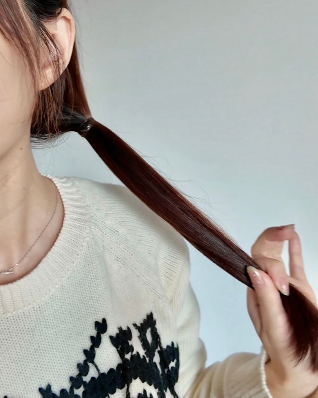 カラーは、7.5トーンのココアブラウン。落ち着いたトーンですが、光に当たったときに透明感が出てとてもキレイです。