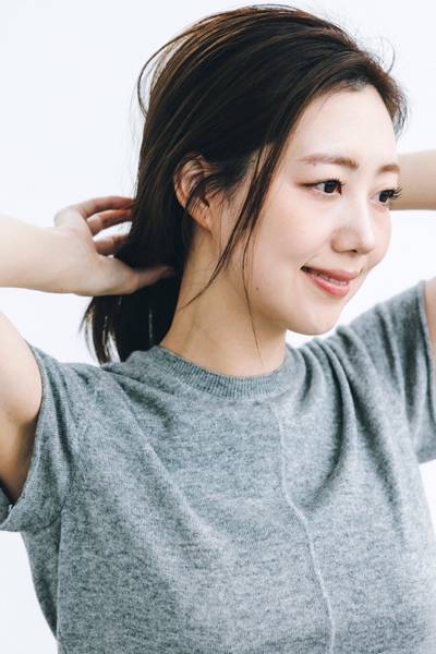 首周りスッキリのお団子アレンジなら涼やかにまとまる。自然な束感を作れるスタイリング剤を使えば、アレンジの崩れ防止&後れ毛さえもお洒落に見えます。