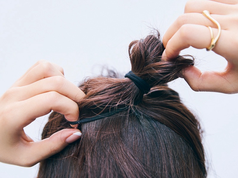 1.耳より上の髪を高めの位置で輪っか状に