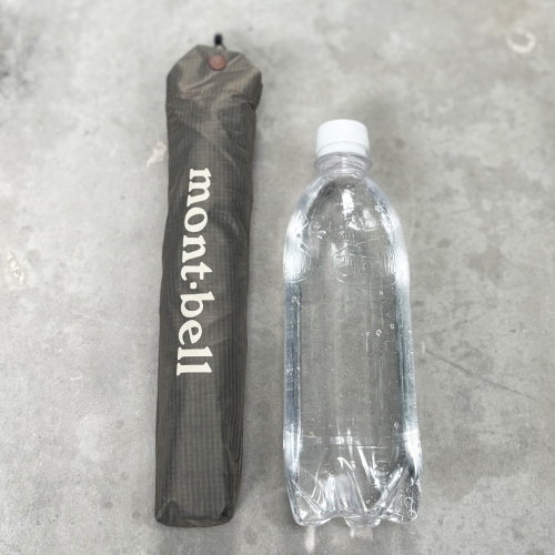 500mlのペットボトルと並べてみました。折り畳み時のサイズは23cm。重量は130gなので、ペットボトルの約1/4の軽さ。超スリム・超軽量です!