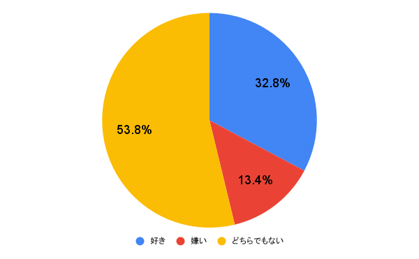 まずは、男性100人に「あなたは女性がネイルしているのが好きですか?」とアンケートを実施。結果は、「好き」… 32.8%、「嫌い」… 13.4%、「どちらでもない」… 53.8%となりました。