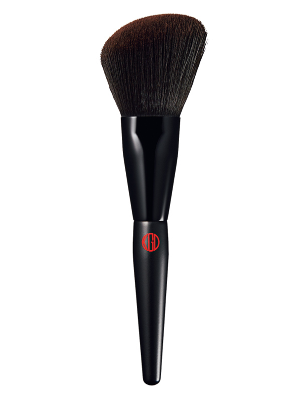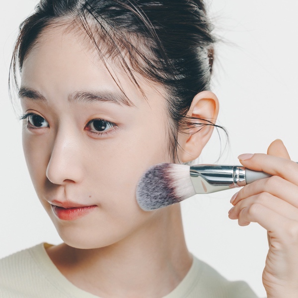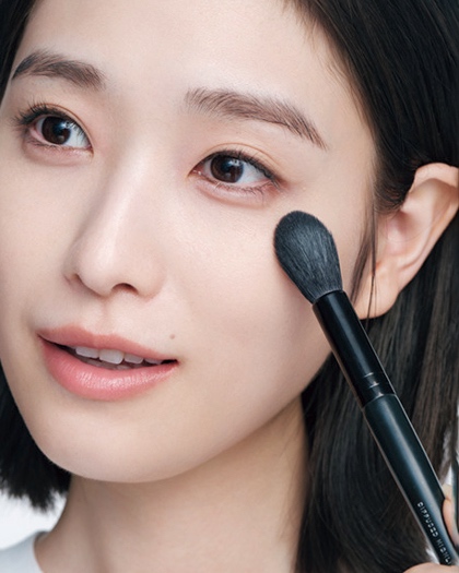 リッチな毛量で粉含みがいいブラシ。ラウンドカットされた斜め型が、ワンストロークで肌と一体化。優しい肌あたりでツヤを与える。