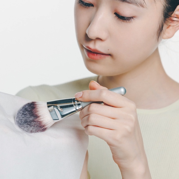 ふんわりとした仕上がりや透明感、自然なツヤ感を残したい人は、ブラシを使ってフェイスパウダーを塗布するのがおすすめ。