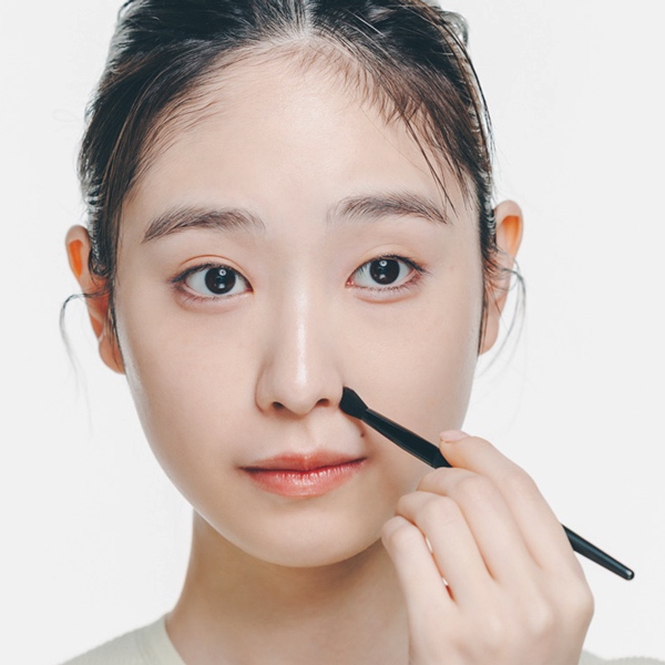 より崩れにくく、ヨレや浮きを防ぐために、皮脂が出やすいパーツは細ブラシを使ってフェイスパウダーを塗布してみましょう。
