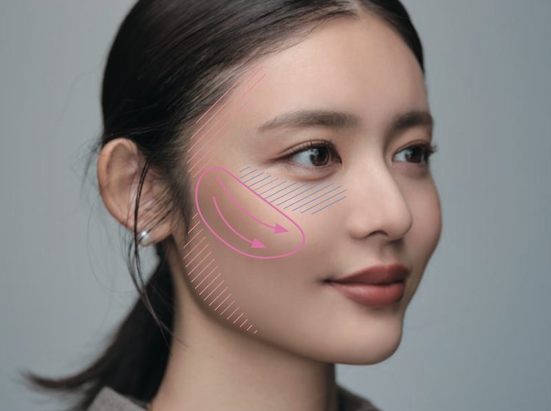 下まぶたまで色をのせることで目が拡張して見えるだけでなく、顔の余白が埋まって間延びした感じを防ぐことができ、さらには自然なつながりが生まれ、チークが浮かないメリットもあります。