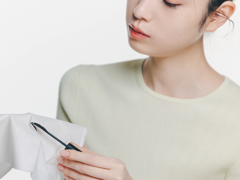 マスカラはダマになると途端に野暮ったい印象に。まつ毛に塗布する前にティッシュで余分な液をしごきましょう。