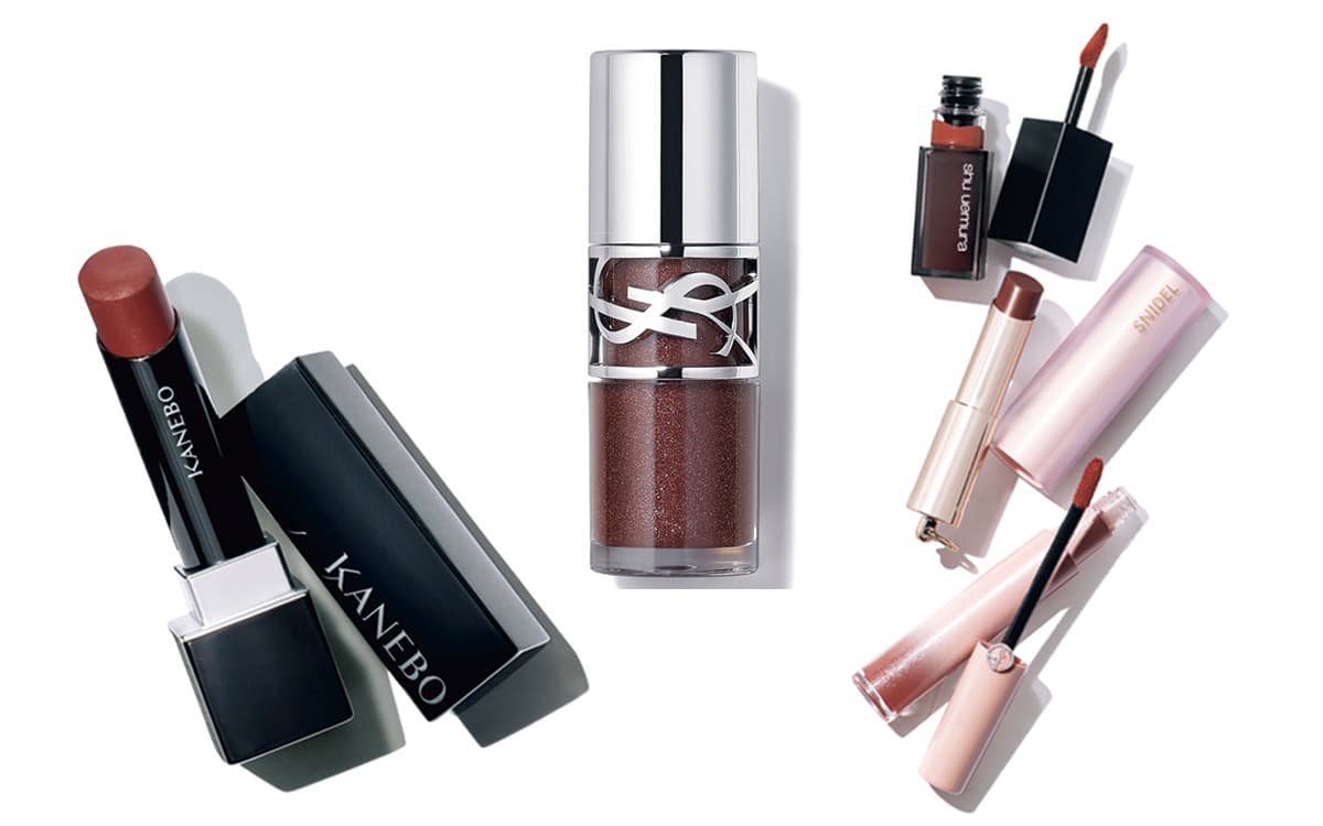 チークはピンクではなく、ヌーディなブラウンをセレクト。顔の外側が濃くなるよう、こめかみから頬骨に向かってのせます。さらにそのままこめかみの上からフェイスラインにものせて。最後はハイライトを目の下に薄く広げ、顔色を明るく見せると同時に、立体的な印象に!