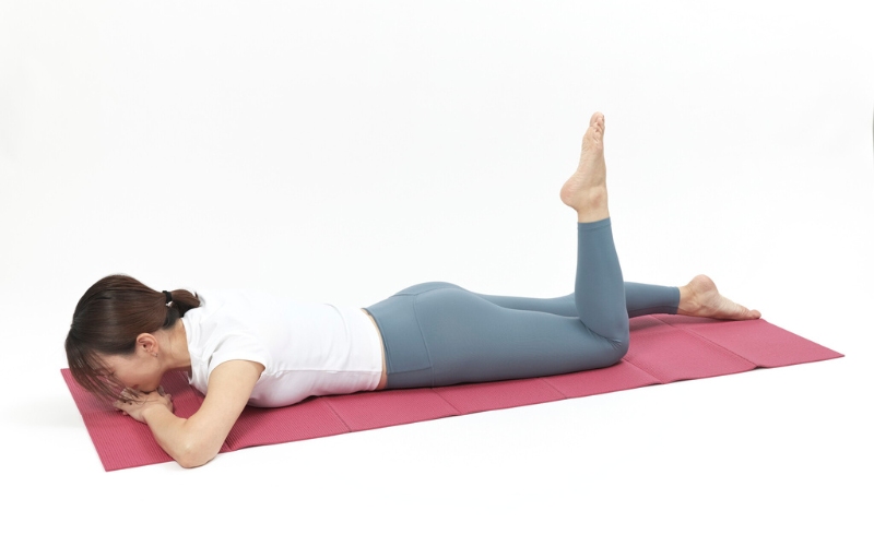 お腹の深部にある「腸腰筋(ちょうようきん)」が硬くなると、骨盤が前に引っ張られやすくなります。うつ伏せのストレッチで、硬くなった筋肉を緩めていきましょう。