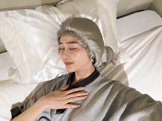 出先での保湿も、いきなりこってりしたものでごまかすのではなく、まずは水分から。「メゾンドアクアのリペアヘアミスト」を小さな容器で持ち歩いていて、ミストした後に「ジェミールフランのバーム」で軽く蓋をするのが定番です。とかすだけで清潔感が増す「リファのブラシ」もマスト。寝るときは「スリーコインズのシルクナイトキャップ」&楽天で買ったシルク枕カバーで摩擦レスに。