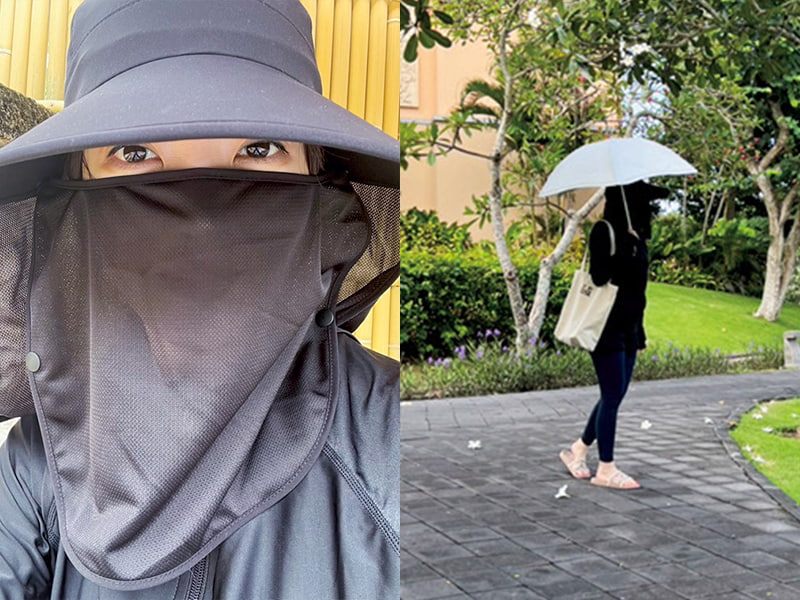 私にとって焼けないことは最優先事項。リゾート地では忍者に変身します。怪しい人に思われても1ミリも焼けたくない!
