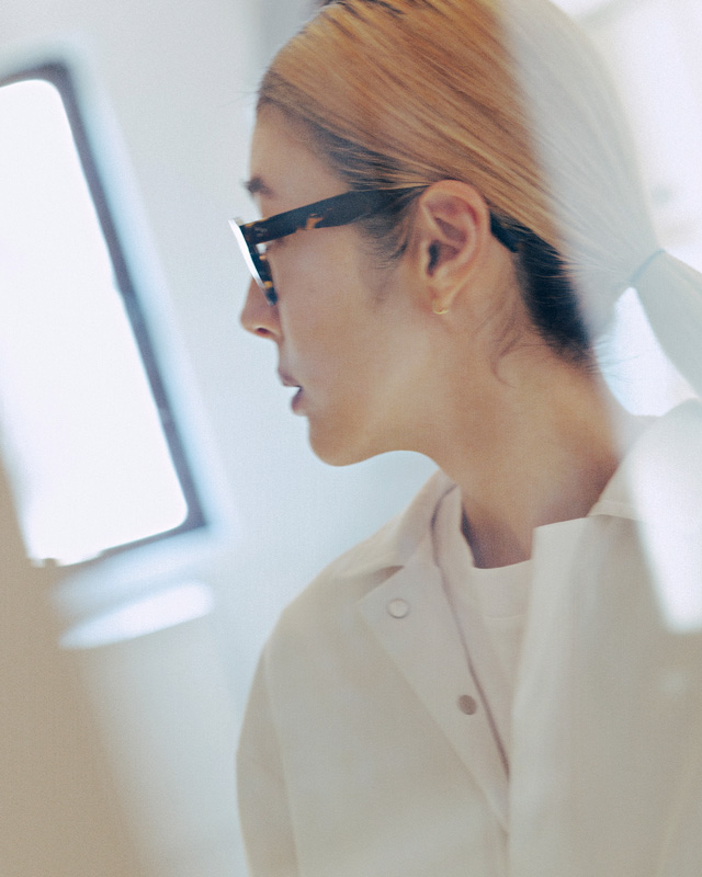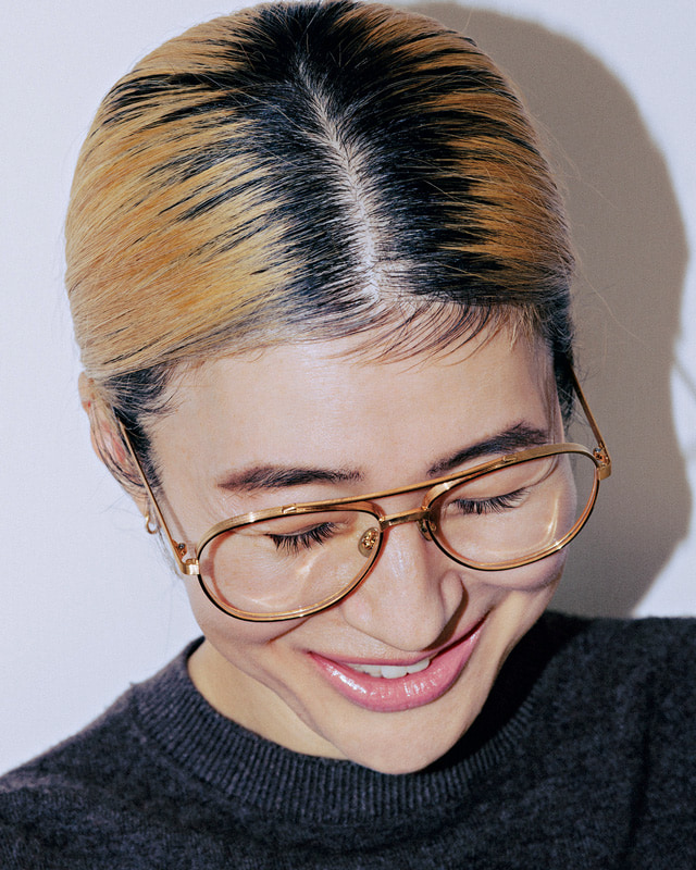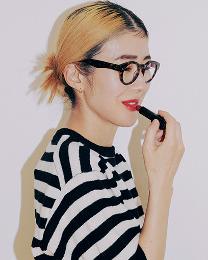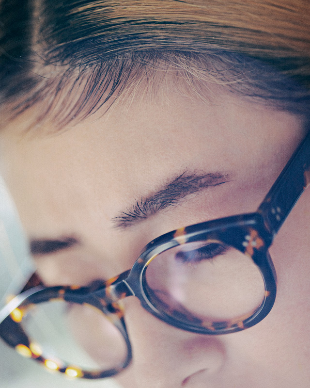 目元にさりげなく落ちる影はアイシャドウに、フレームの線はアイラインとして。レンズというフィルターは、コンシーラー代わりにも。私にとってメガネはメイクなので、メイクを変える感覚で、洋服や気分に合わせていろんなタイプを楽しみます。