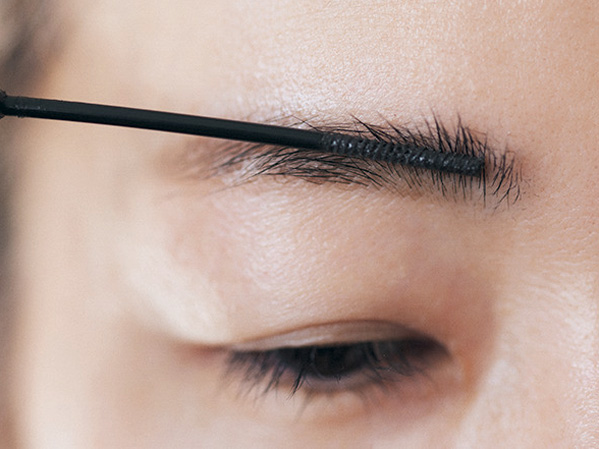 仕上げにCの眉マスカラで毛を上向きにスタイリング。眉頭を中心にしっかりと上げる。