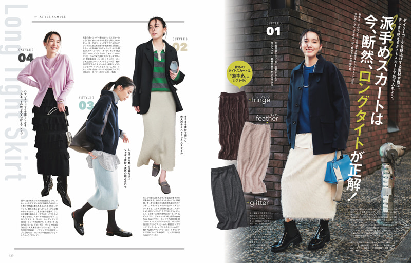 デイリーコーデを格上げする素材や色は、すっきり見えるタイトスカートで取り入れよう。