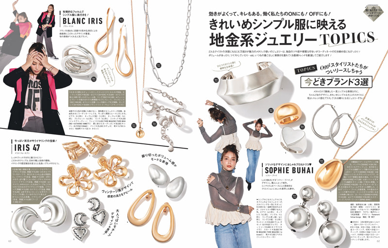 どんなテイストの洋服にもなじむ万能さが魅力のメタリック使いのジュエリーは、独自のツヤ感や硬質な佇まいがコーディネートの引き締め役にもぴったり!