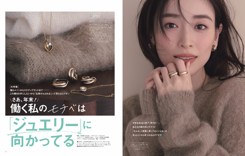 名品ジュエリーをお迎えする日は、今いちばんお気に入りのニットを着て出かけてみて。