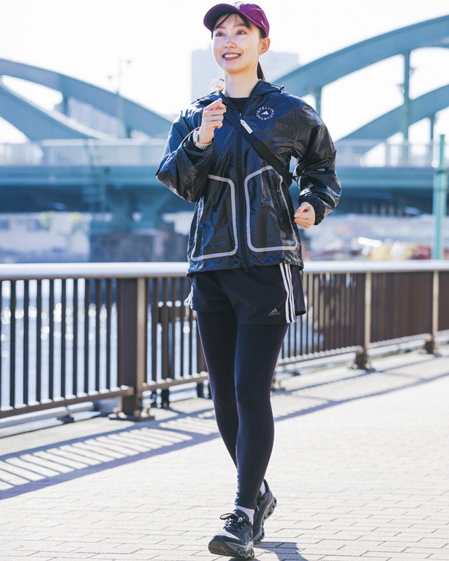 「ふだんはデスクワークが多いので、こうしてたまに外に出て、走って、汗をかくのが、すごく気持ちいいんです。基本的には夫と一緒に走っていて、疲れたら雑談しながら歩いたり、ときには気合いを入れて走り込んだりと、無理をせずにエンジョイしています。ランニングのいいところは、日々、景色が変わること。今日はこっちのコースで走ってみようとか、その日の気分で変えています。たっぷり汗をかいたあとは、そのまま温泉に行くことも。最高のリフレッシュになる休日です♪」(渡邉さん)