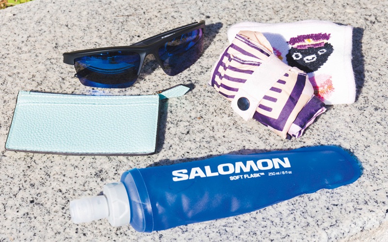 ウエストポーチの中身はこんな感じ。ランニング後にお買い物することもあるのでエコバッグとクレジットカードも忘れずに携帯しています!