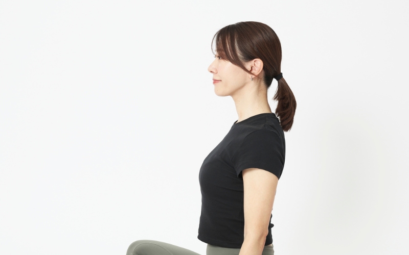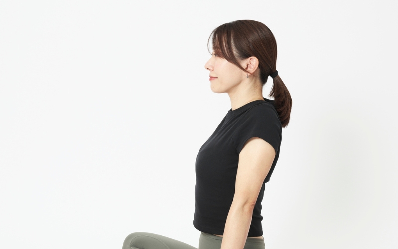 ポイント:立っている時は両足で踏ん張りながら、座っている時は左右のお尻をバランスよく座面に乗せながら、上体を真横に倒します。