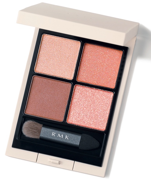 オレンジブラウンとピンクの温かみあるハーモニー。サテンやマット、メタリックなど、異なる質感で多彩な目元を演出。