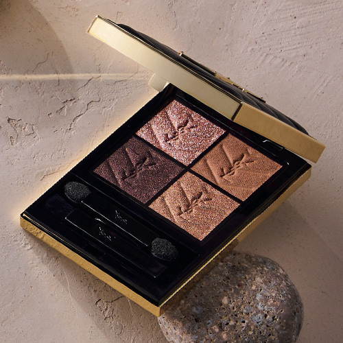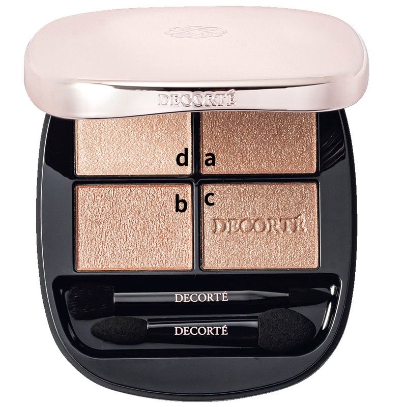 ベージュブラウンカラーにピンクのニュアンスを感じる4色パレット。繊細なラメが煌めき、目元に品のよさと透明感をオン。