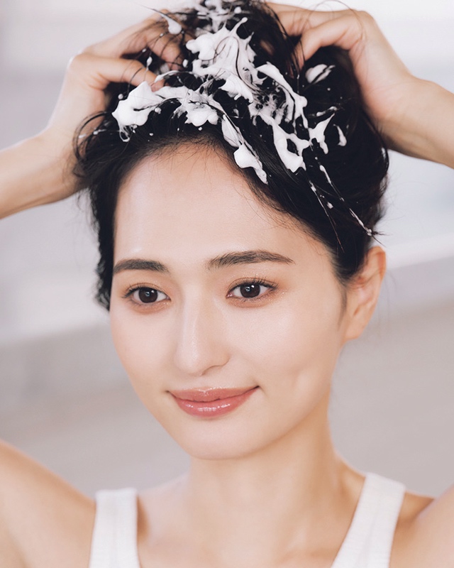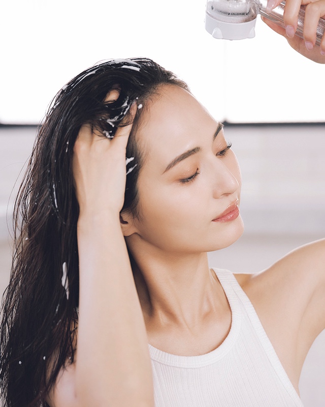 髪についた泡と地肌のぬめりまでしっかりオフ。つむじ周りは特に洗い残しが多いゾーンにつき入念に。すすぎが甘いと、続くトリートメントの浸透の妨げに。