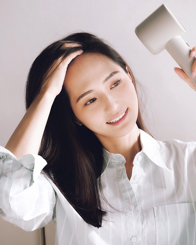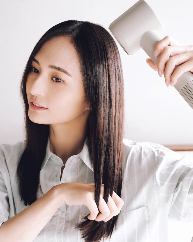 毛流れに沿って温風を当てながら手ぐしを通し、毛先も乾かし切る。最後は冷風でキューティクルを締める。